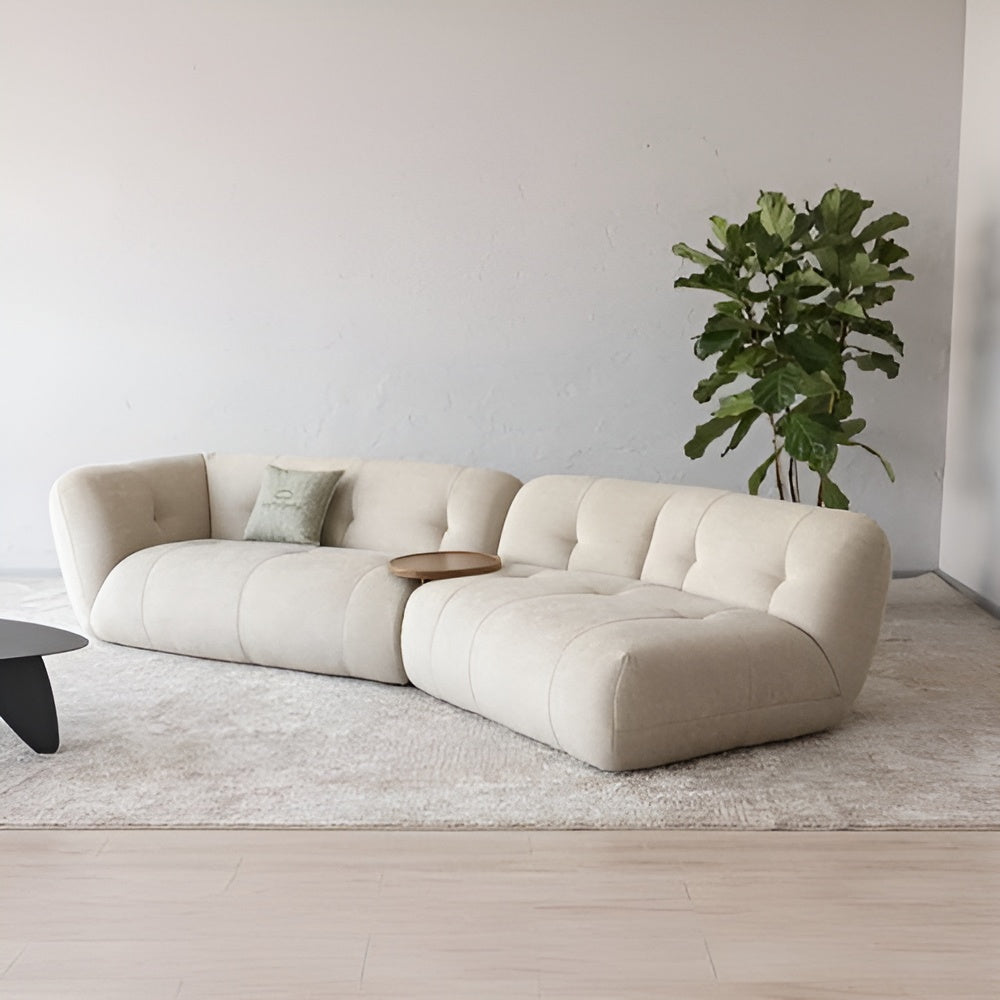 كنبة عصرية بتصميم منخفض وانسيابي يمنحك إحساسًا بالاسترخاء الكامل، بتنجيد ناعم بلون بيج دافئ يضيف هدوء وأناقة لأي مساحة، مع تقسيمات مبطنة تعزز الراحة وتبرز الطابع المودرن، بالإضافة إلى طاولة جانبية دائرية مدمجة لسهولة الاستخدام – قطعة واحدة مصممة لتكون محور الجمال والراحة في منزلك.