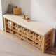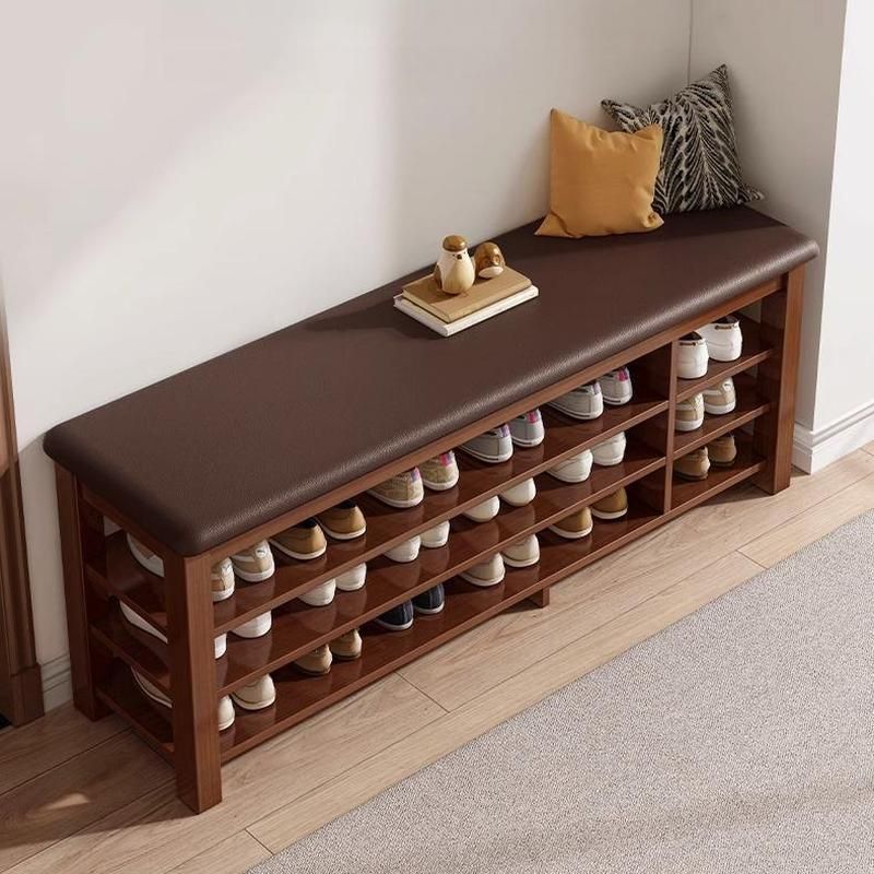 جلسة مع خزانة للأحذية بتصميم عصري يجمع بين الجمال والعملية في آنٍ واحد.