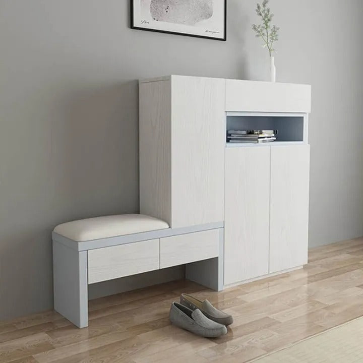 خزانة هوم الترندي للاحذية , قطعة اساسية وعملية ضمن اثاث منزلك , احصل الأن عليها بافضل خامات واعلي جوده , كما انها تاتي بالألوان تتيح لك حرية إختيار ما يناسب منزلك الراقي , مساحات كبيرة وشاسعة مزوده بكرسي للاستخدام اثناء إستخدامها مع ادراج لتخزين الأغراض الهامه , الأفضل دائما للافضل .