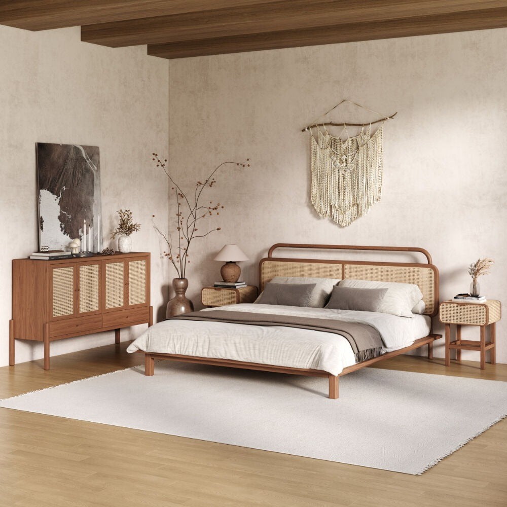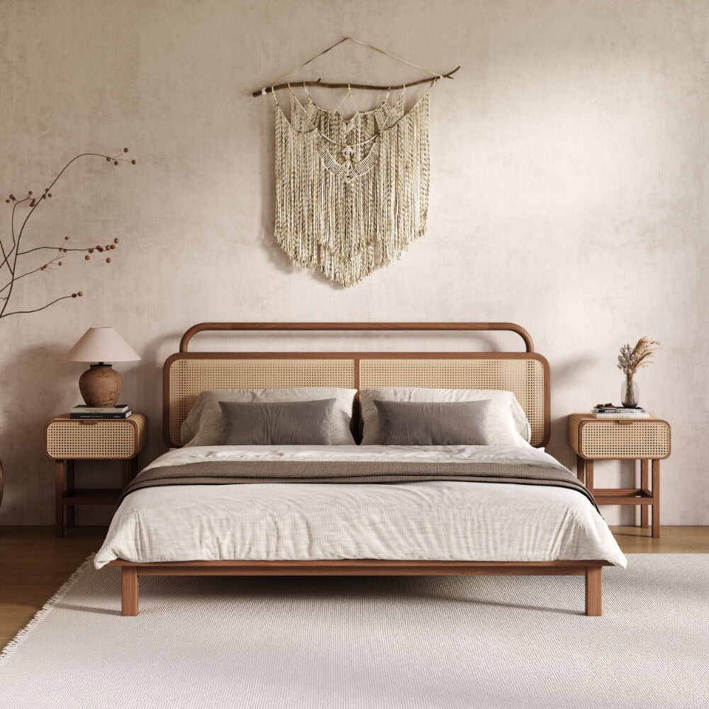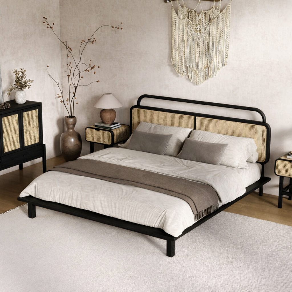 سرير روتان مودرن تصميم عصري فاخر يجمع بين الأناقة الطبيعية ولمسة الستايل الحديث لغرفة نوم مميزة.