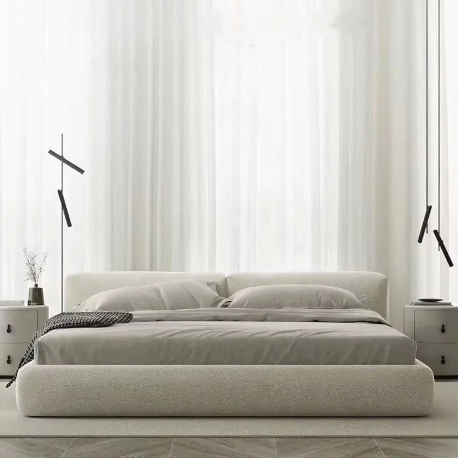 يتميز بلوح خلفي أنيق بخطوط عصرية وتفاصيل تشبه مظهر الرخام الفاخر، مما يضفي على غرفة النوم لمسة فخمة لا تُقاوَم.