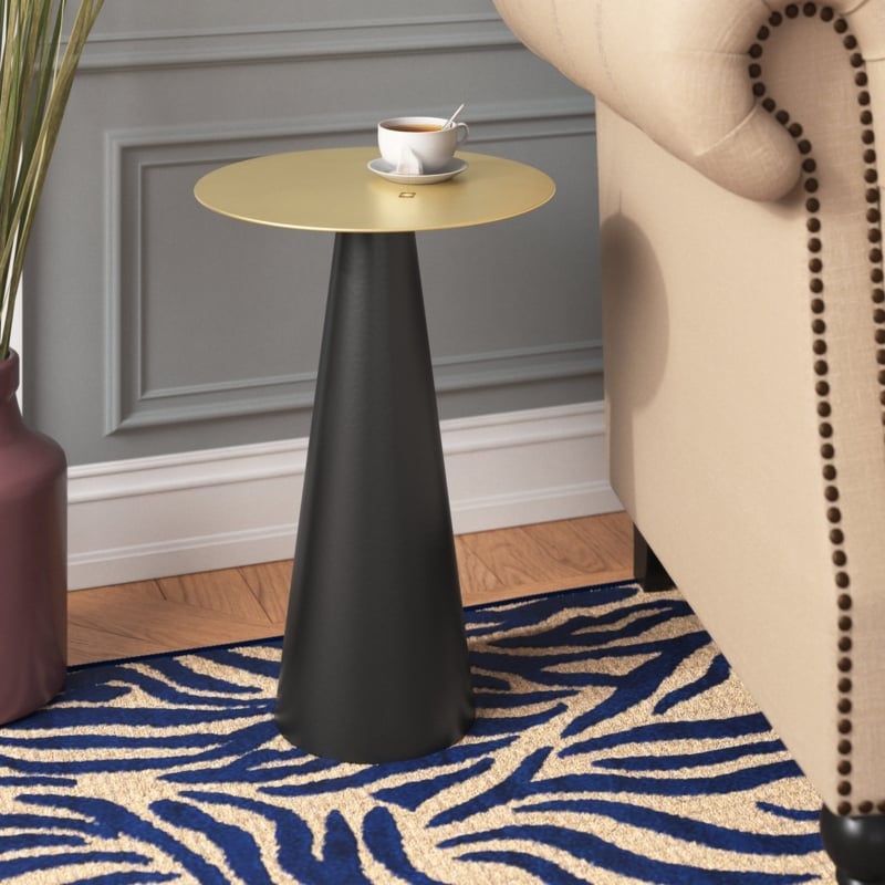 قطعة أنيقة تضيف لمسة راقية لأي مساحة؛ تتميز الطاولة بسطح دائري باللون الذهبي يمنح لمعة راقية، مدعوم بقاعدة سوداء ثابتة تضيف حضورًا فريدًا. مناسبة لوضع القهوة، الكتب أو القطع الديكورية بجانب الأريكة أو السرير. متينة، خفيفة وسهلة النقل، وتعد خيارًا مثاليًا لإكمال ديكور منزلك بقطعة تجمع بين العملية والفخامة في آن واحد.