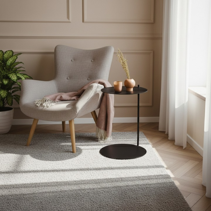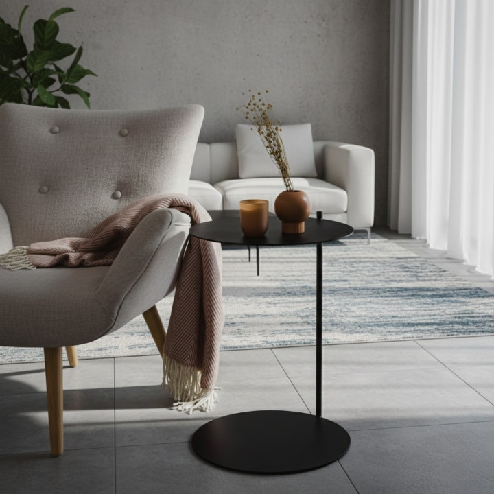 طاولة بسيطة لكنها تضيف لمسة فاخرة لأي مساحة. تصميمها الخفيف يسهل تحريكها في أي زاوية، وقاعدتها الدائرية تمنح ثبات وشكل راقٍ بدون ما تشغل مساحة كبيرة. مثالية لوضع فنجان القهوة، الشموع، الكتب أو إكسسوارات الديكور جنب الكرسي أو السرير. قطعة واحدة تكمل الديكور وتمنح المكان مظهر مرتب وعصري بكل سهولة.