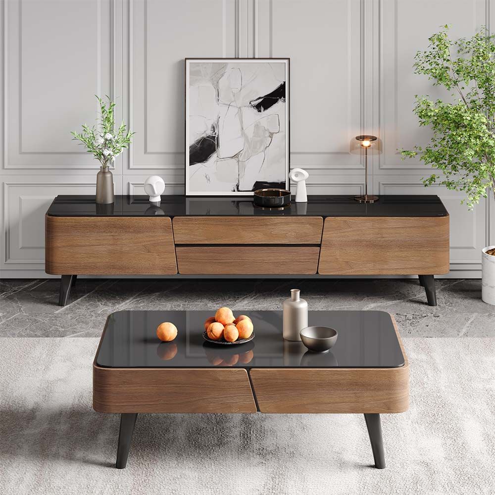 طاولة قهوة وتلفاز فاخرة تمنح غرفتك حضور راقٍ بلمسة عصرية ملفتة.