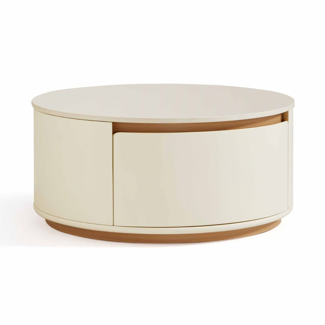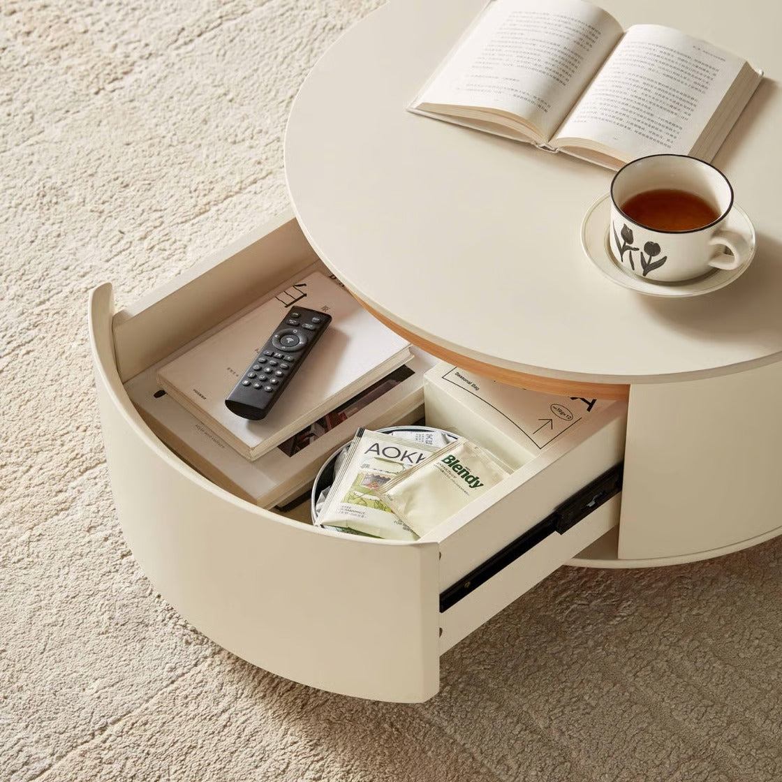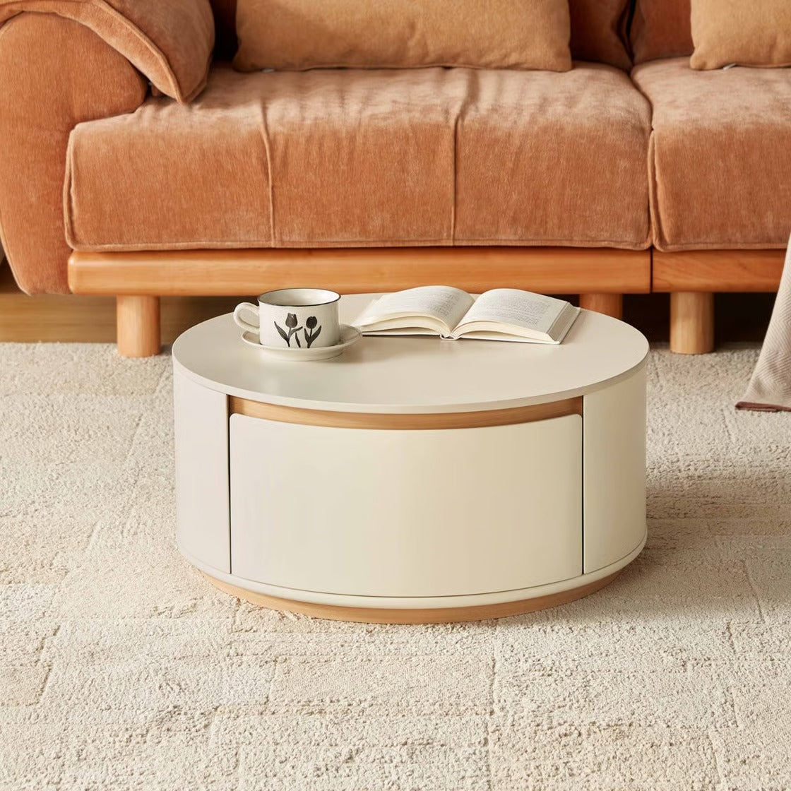 أضف لمسة دفء وأناقة لمساحتك مع هذه الطاولة الدائرية العصرية التي تجمع بين التصميم البسيط والعملية. تتميز بسطح انسيابي واسع مثالي لوضع الكتب والمشروبات، مع تخزين مخفي يساعدك على تنظيم الغرفة والحفاظ على مظهر مرتب دائمًا. صممت بلمسات خشبية طبيعية تضيف إحساسًا بالراحة وتنسجم مع مختلف أنماط الديكور، مما يجعلها اختيارًا مثاليًا لغرفة معيشتك.
