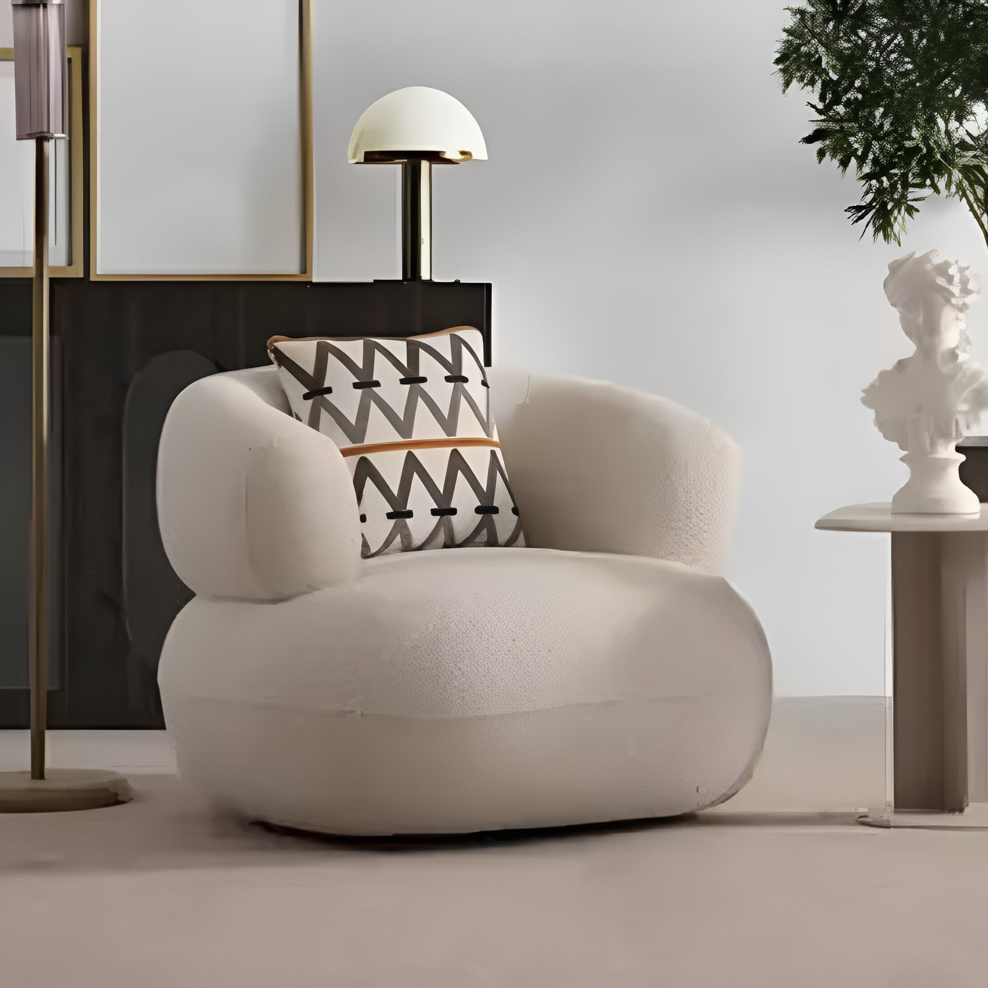 كرسي مودرن بتصميم منحني أنيق يمنحك إحساسًا بالراحة والدفء، مصنوع من قماش عالي الجودة بملمس فاخر ولمسة ناعمة تضيف فخامة هادئة لأي مساحة. يتميز بتفاصيل دائرية جذابة ووسادة أنيقة تمنح دعمًا مثاليًا، ليكون قطعة ديكور مميزة تجمع بين الراحة العصرية والجاذبية البصرية، ويضفي طابعًا راقيًا ومريحًا على غرفة المعيشة أو ركن الاسترخاء.