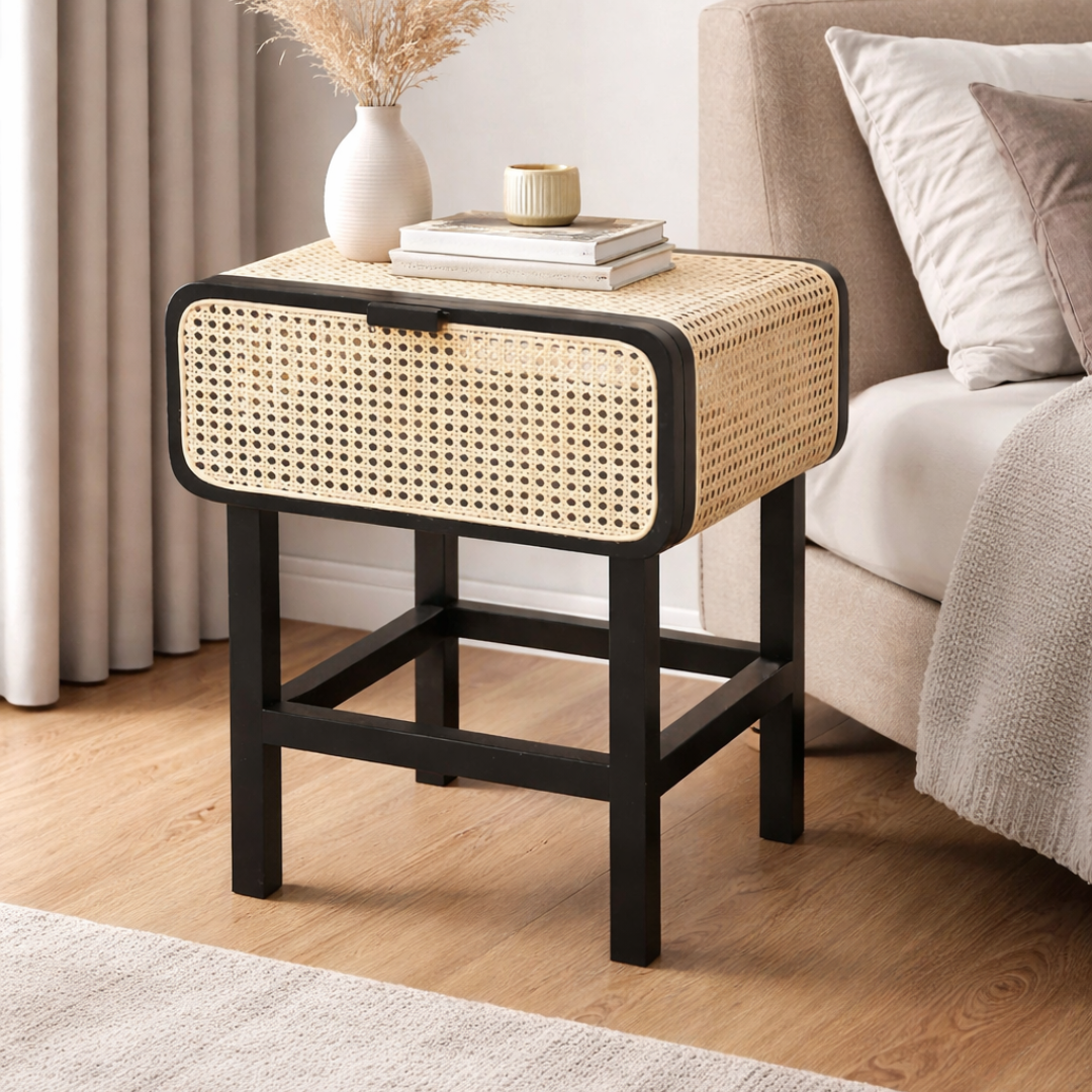 كمودينة روتان مودرن قطعة ديكور أنيقة تجمع بين الستايل العصري ولمسة الروتان الطبيعي.
