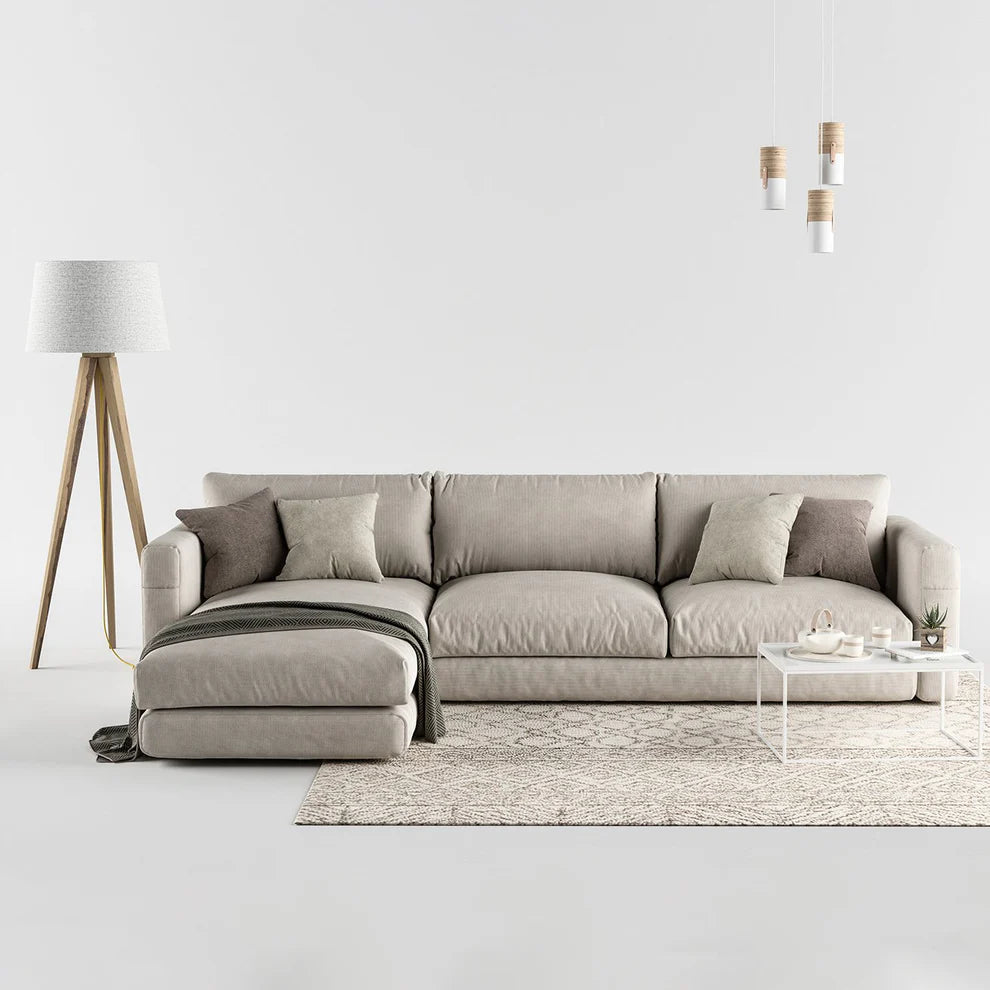 اجعلي هذه الكنبة العصرية جزءًا من منزلك وأضيفي لمسة أنيقة إلى مساحة المعيشة الخاصة بك. يتم صنع هذه الكنبة عند الطلب بإطار خشبي متين يضفي عليها القوة والثبات. وتضمن النوابض الجيبية راحة إضافية. علاوة على ذلك، توفر الأذرع الكبيرة مسندًا مريحًا للذراعين ويمكن استخدامها أيضًا كصينية مسند للذراعين.