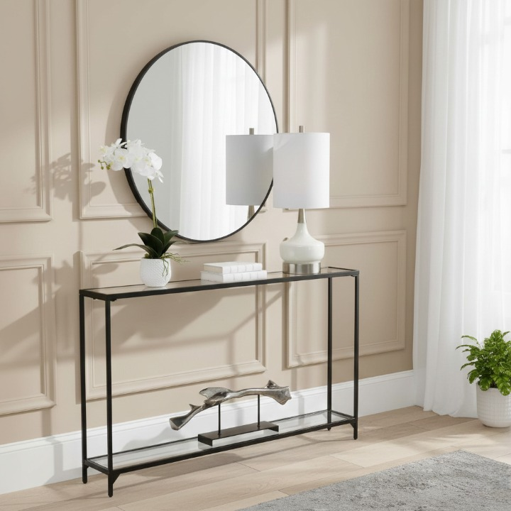 قطعة واحدة بتصميم فائق البساطة تمنح مدخل منزلك لمسة فاخرة، حيث يجمع هذا الكونسول بين إطار معدني رفيع وسطح أنيق يوفر مساحة مثالية لوضع الديكورات، المزروعات، أو الإضاءة الجانبية. عملي وخفيف بصريًا، يناسب المساحات الصغيرة والكبيرة دون أن يشغل حيزًا، ويضيف ترتيبًا وأناقة لأي ركن في المنزل.