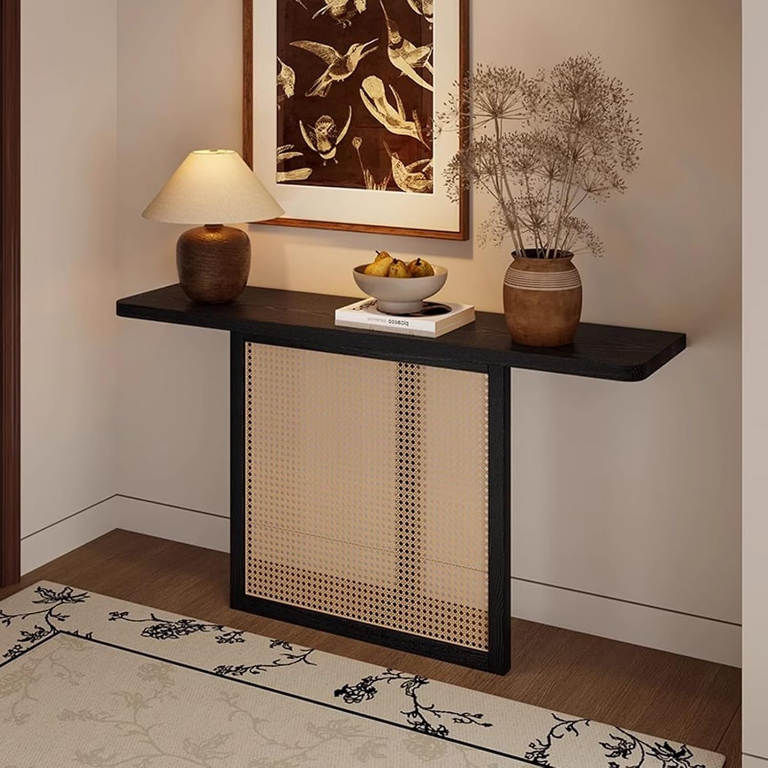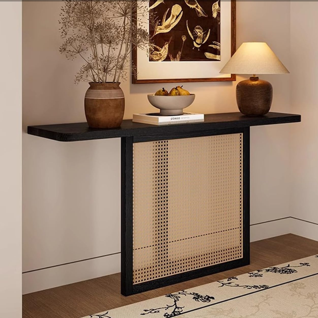 يتميز بخطوط نظيفة وتشطيب راقٍ يعكس روح الديكور العصري، مع سطح عملي مثالي لعرض الإكسسوارات، المرايا أو القطع الديكورية.