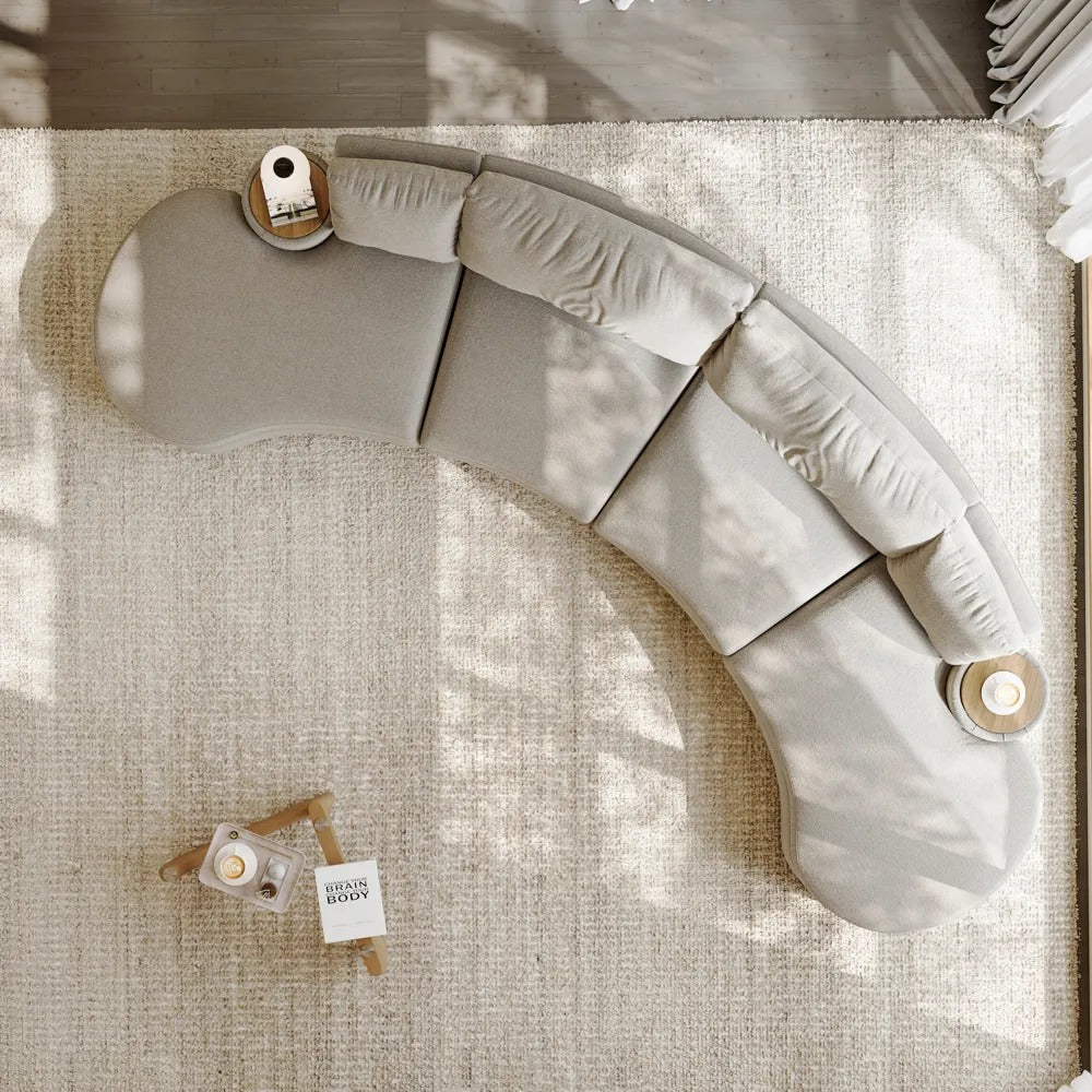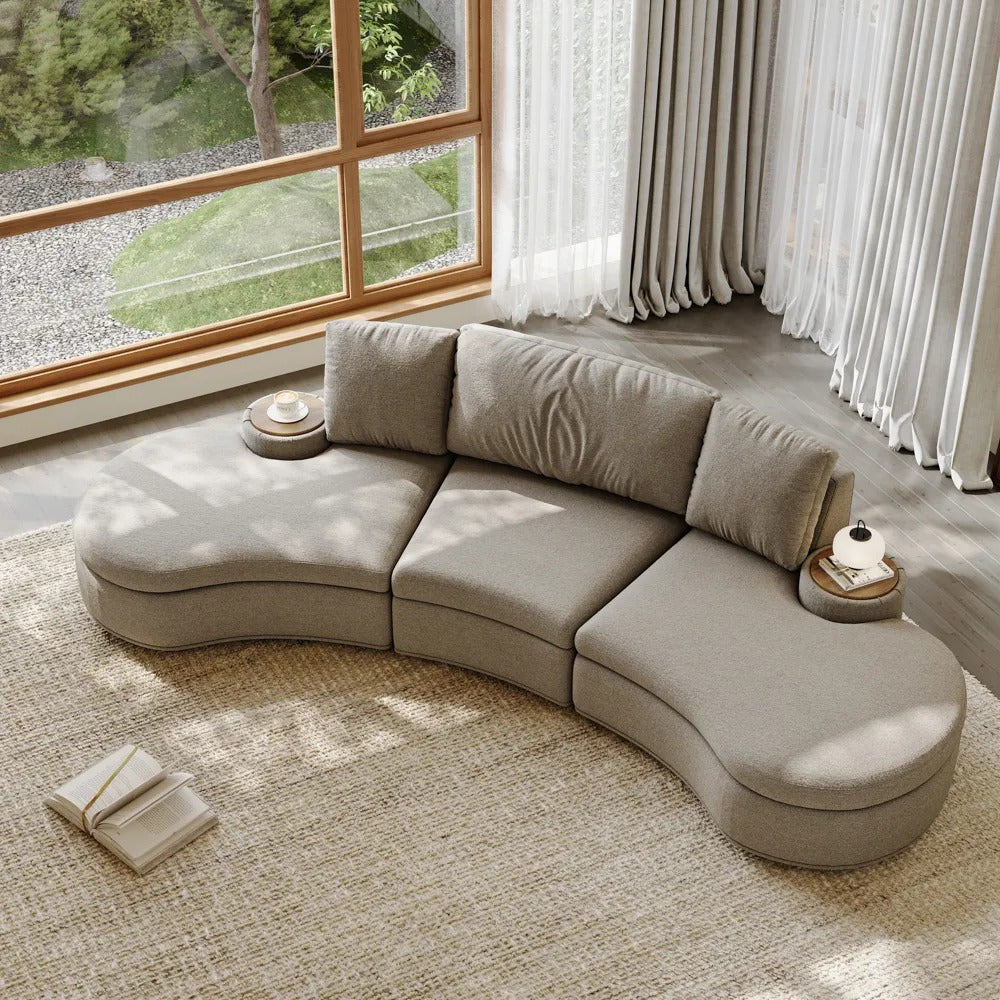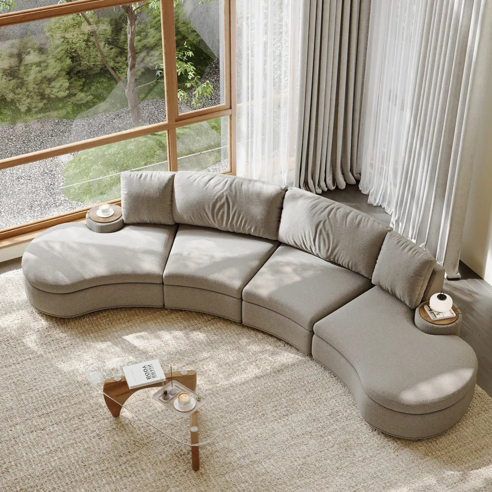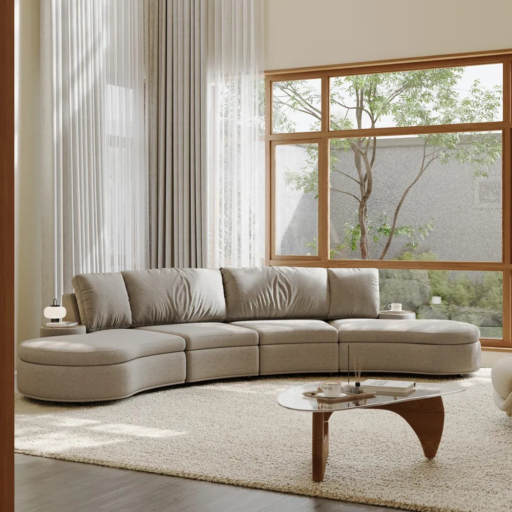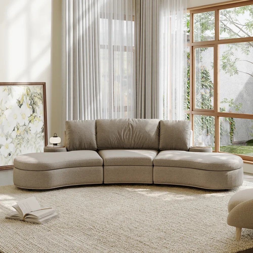 كيرفد صوفا كنبة بتصميم منحني عصري يضيف لمسة فخامة ونعومة لغرفة المعيشة.