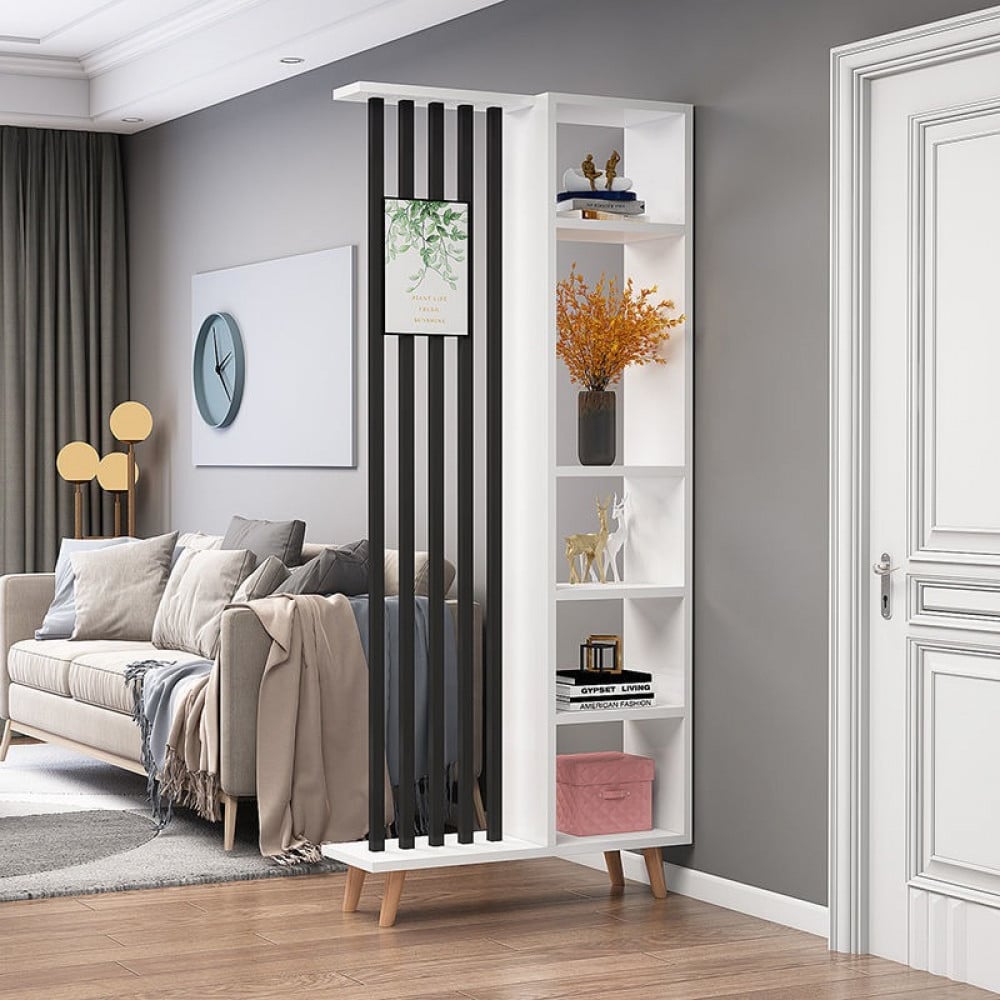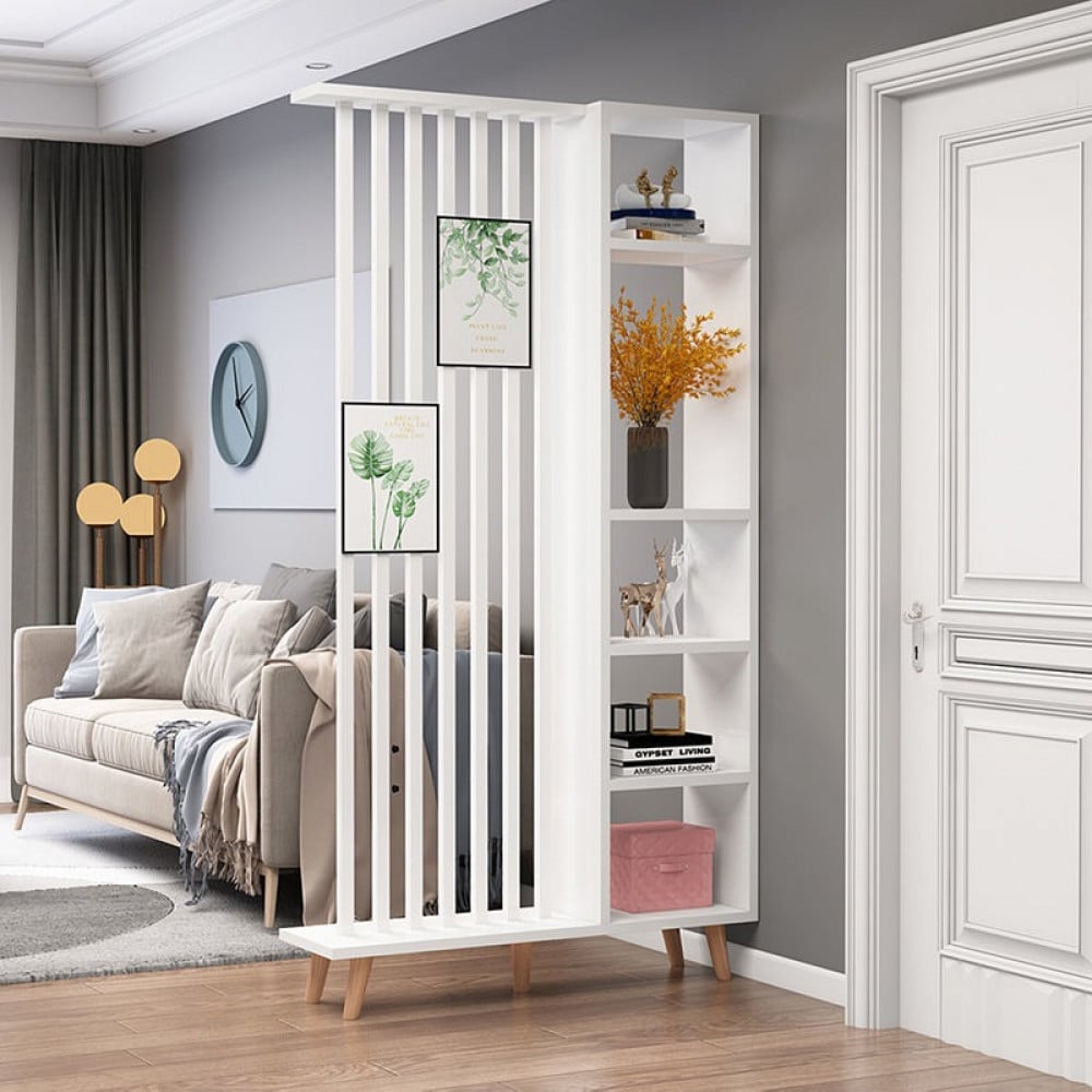 حاجز جداري مودرن ، مصنوع من الألواح الخشبية ام دي اف وايضا مصنوع من جذوع الأشجار المكسورة ومعالجتها بضغط عالٍ ، صديق للبيئة ، مقاومة للخدش ، المادة سميكة ، طبقة واقية ،يحتوي ارفف للتخزين ، ارجل من الخشب الثقيل يجعلها ثابتة ، مقاومة للاهتزاز، متوفر بعدة الوان ( اسود * ابيض ، اسود كامل - ابيض كامل ، خشبي فاتح ) ، يأتي بمقاسين مختلفين ( العمق 30 سم - الارتفاع 205 سم - العرض 80 , 120 سم ) ، هذا الجدار سوف يناسب لمنزلك الانيق .