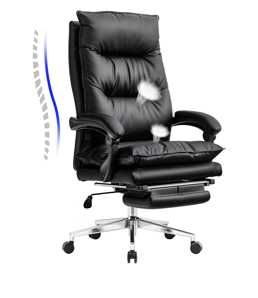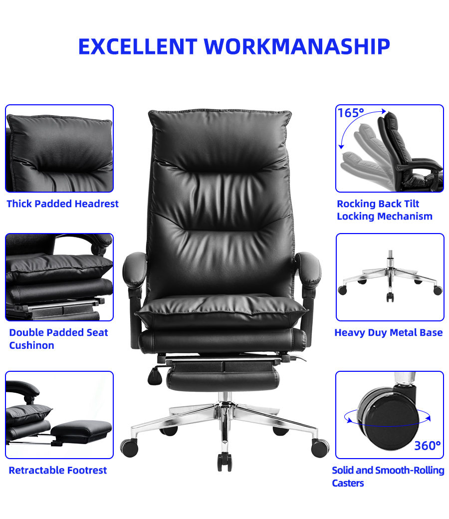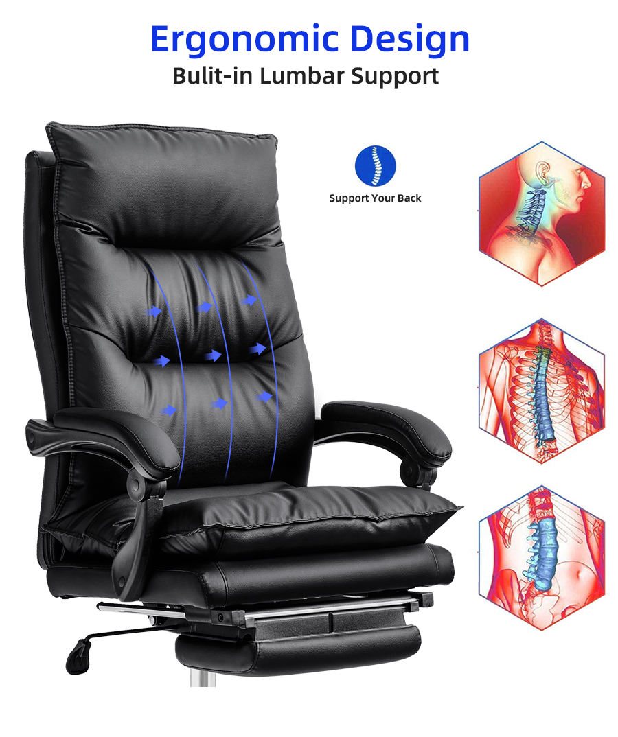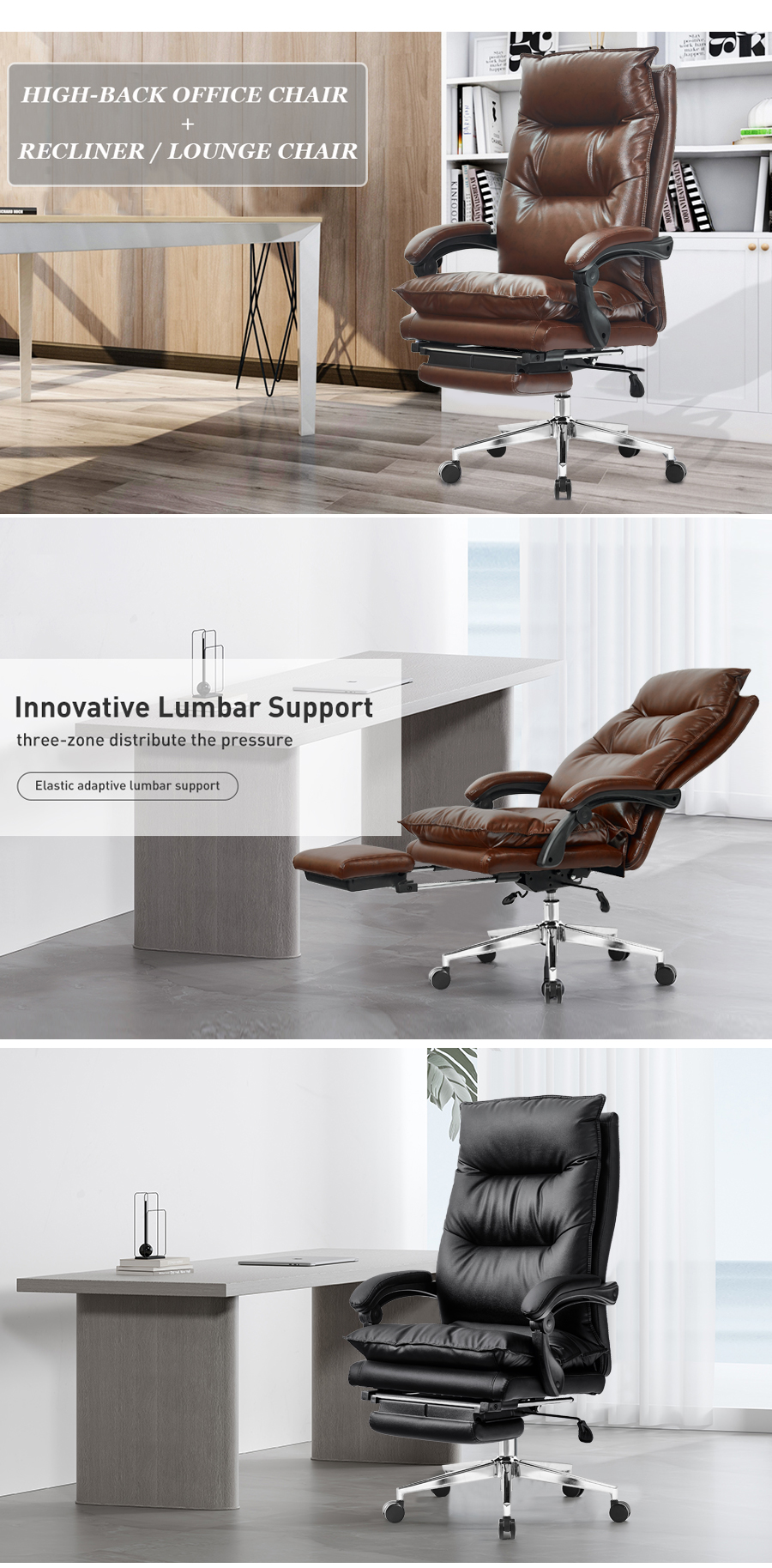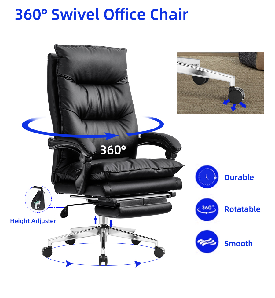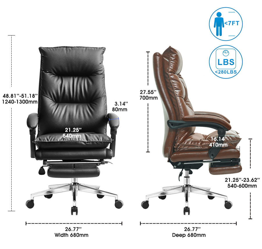 كرسي مكتب مودرن مريح ، مصنوع من اجود خامات الجلد ، ذات ارجل معدن رائعه تتحمل الاوزان الثقيله ، يتميز بمسند للقدم ويمكنك التحكم فى ارتفاع الكرسي وظهر الكرسي ، تحتوي الارجل علي عجل لسهولة الحركه من مكان ل اخر ، متوفر بلوني ( البني - الاسود ) ، يأتي بمقاسين مختلفين ( العمق 41 سم - الارتفاع 124 سم ، 130 سم - العرض 54 سم ) ، هذا الكرسي سوف يناسب منزلك الانيق .