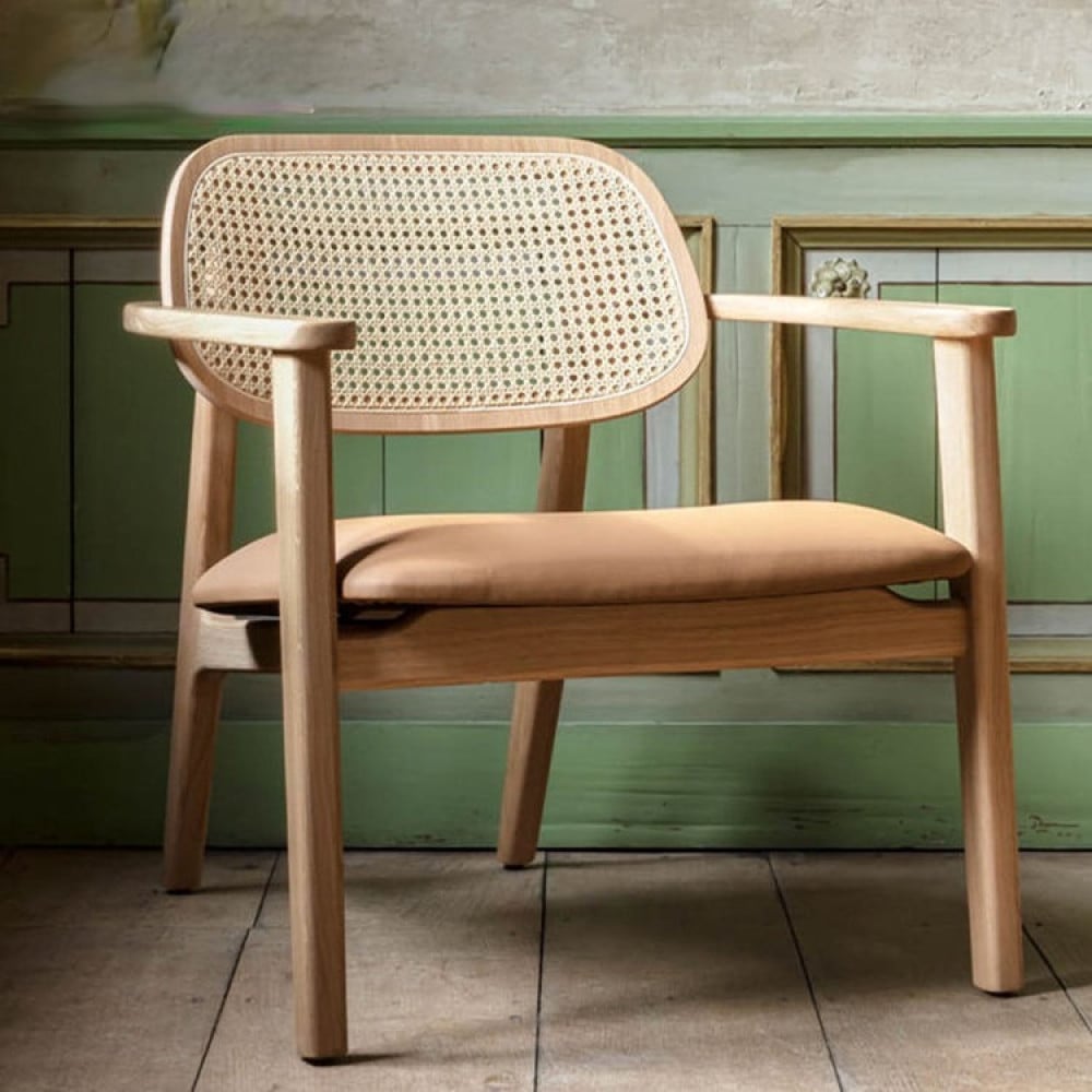 كرسي كلاسيك بتصميم حديث , بفضل خامات الراتان والخشب الثقيل و الصلب الذي يجعلها ثابتة و المقاومة للاهتزاز ، منجدة بجلد مملوء بالأسفنج لإضفاء إحساس بالراحة اثناء الجلوس عليه لفترات طويله ، متوفرة بلوني ( البيج - الأسود ) ، تأتي بمقاس (العمق 60سم - الارتفاع 73سم - العرض 70سم) ، يتجدد منظر الغرفة مع هذا الكرسي الانسيابي ذو التصميم العصري مع دمج لمسة كلاسيكية من الراتان .
