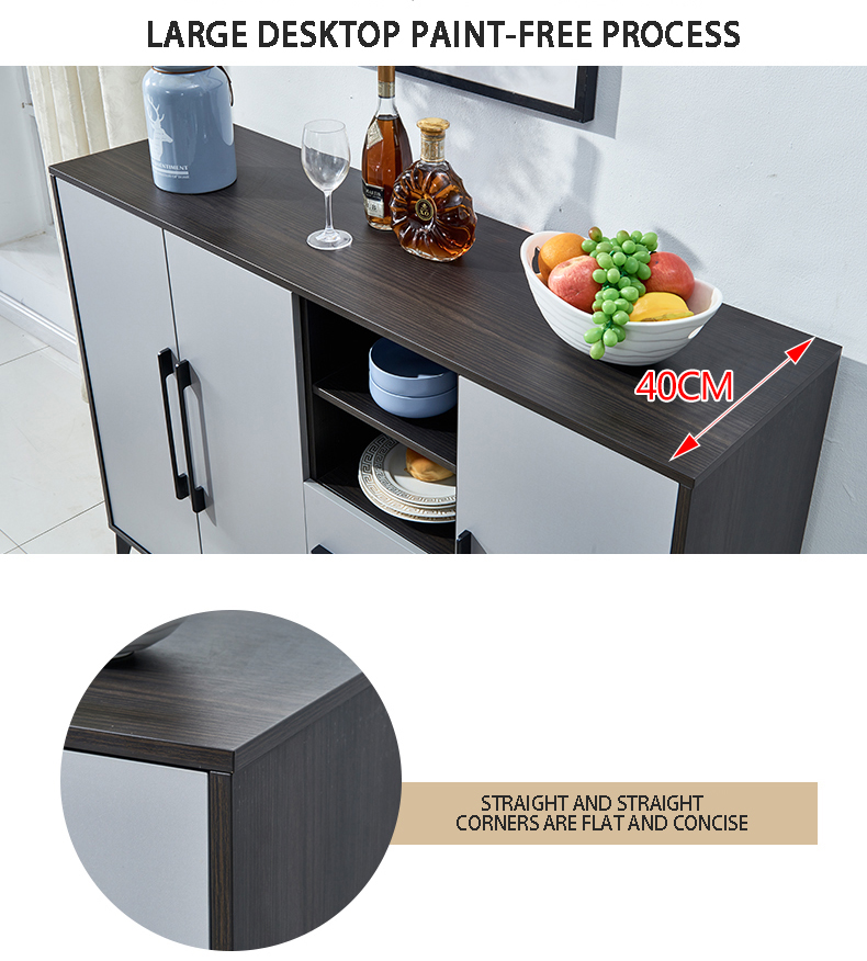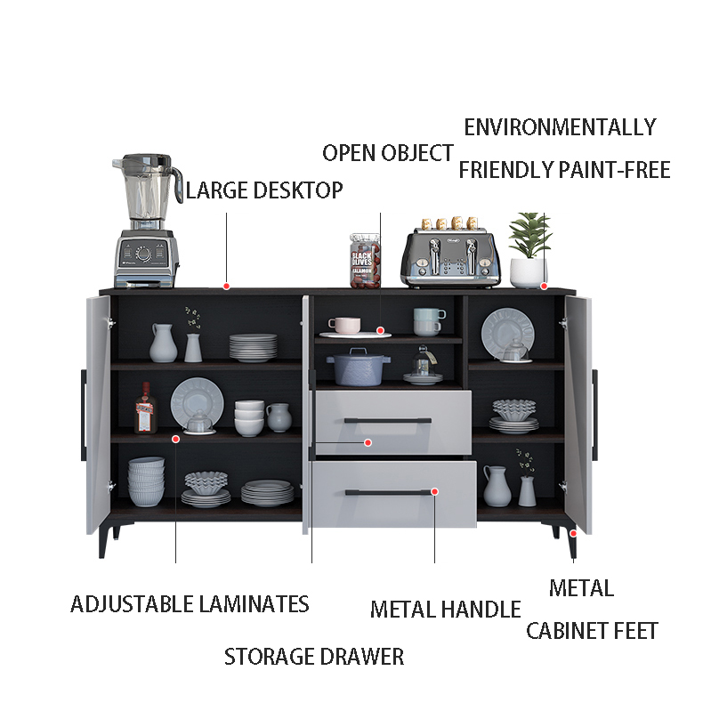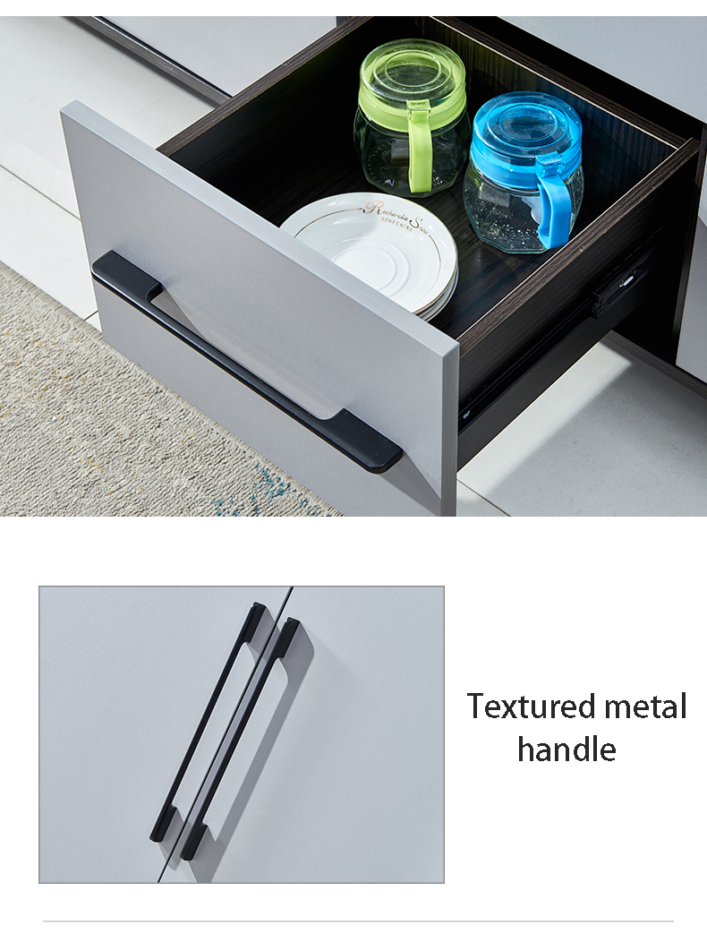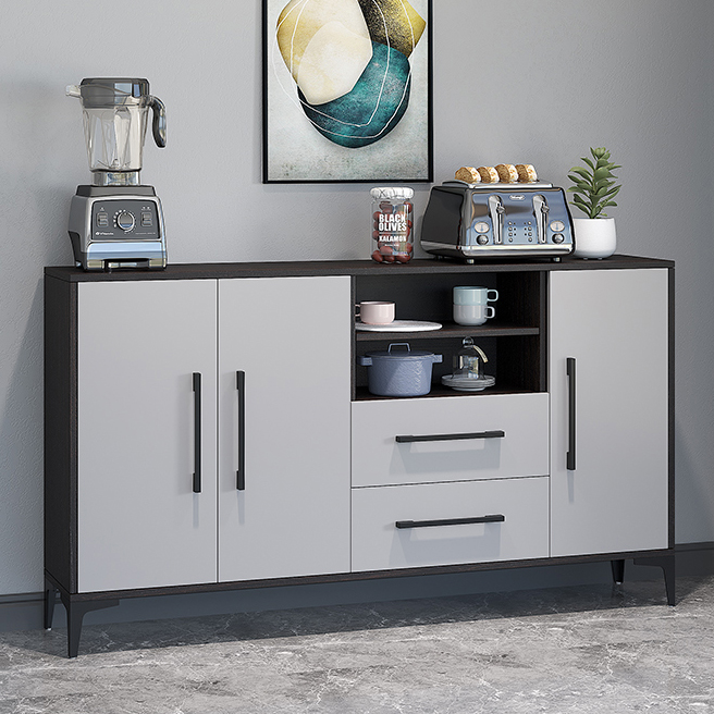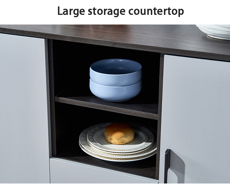بوفية خشبي بتصميم انيق مصنوع من أجود أنواع الأخشاب , يتكون هذا البوفيه من ثلاث وحدات بمساحه واسعه من الداخل للتخزين , مع رفين مفتوحين من المنتصف يمكن تزينهم ببعض الديكور, درجين أيضاً للتخزين ، متوفر باللون الرمادي الذي يناسب جميع أنواع الديكورات , يأتي بمقاسات متعددة ما بين (ارتفاع 100 سم - عرض 80 سم ، 140 سم ، 160 سم - عمق 40 سم ) من المؤكد أنه سيضيف لمسه اناقة الي منزلك