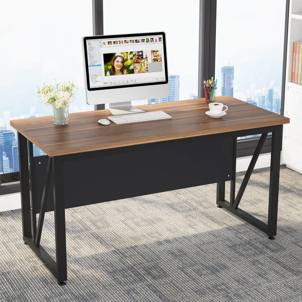 مكتب تنفيذي للكمبيوتر والعمل في المنزل من ترايبسيجنز. مصنوع من الخشب الصلب بلون بني دافئ. مقاسات مثالية: ارتفاع 80 سم، عرض 60 سم، وعمق 140 سم. تصميم يجمع بين الفخامة والوظائف العملية، مثالي لتحسين بيئة العمل المنزلية
